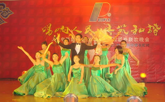 本網(wǎng)訊 歡聲笑語辭舊歲,鶯歌燕舞迎新年。12月28日18時(shí)30分,由人民電器集團(tuán)、溫州大學(xué)甌江學(xué)院和柳市鎮(zhèn)長虹村共同舉辦的《唱響人民·共筑和諧》2008年慶元旦迎新春聯(lián)歡晚會(huì)在集團(tuán)總部多功能廳隆重舉行。正在外地考察工作的鄭元豹董事長、葉玉森總經(jīng)理發(fā)來賀電,預(yù)祝晚會(huì)取得圓滿成功,祝愿全體員工新年快樂,萬事如意。